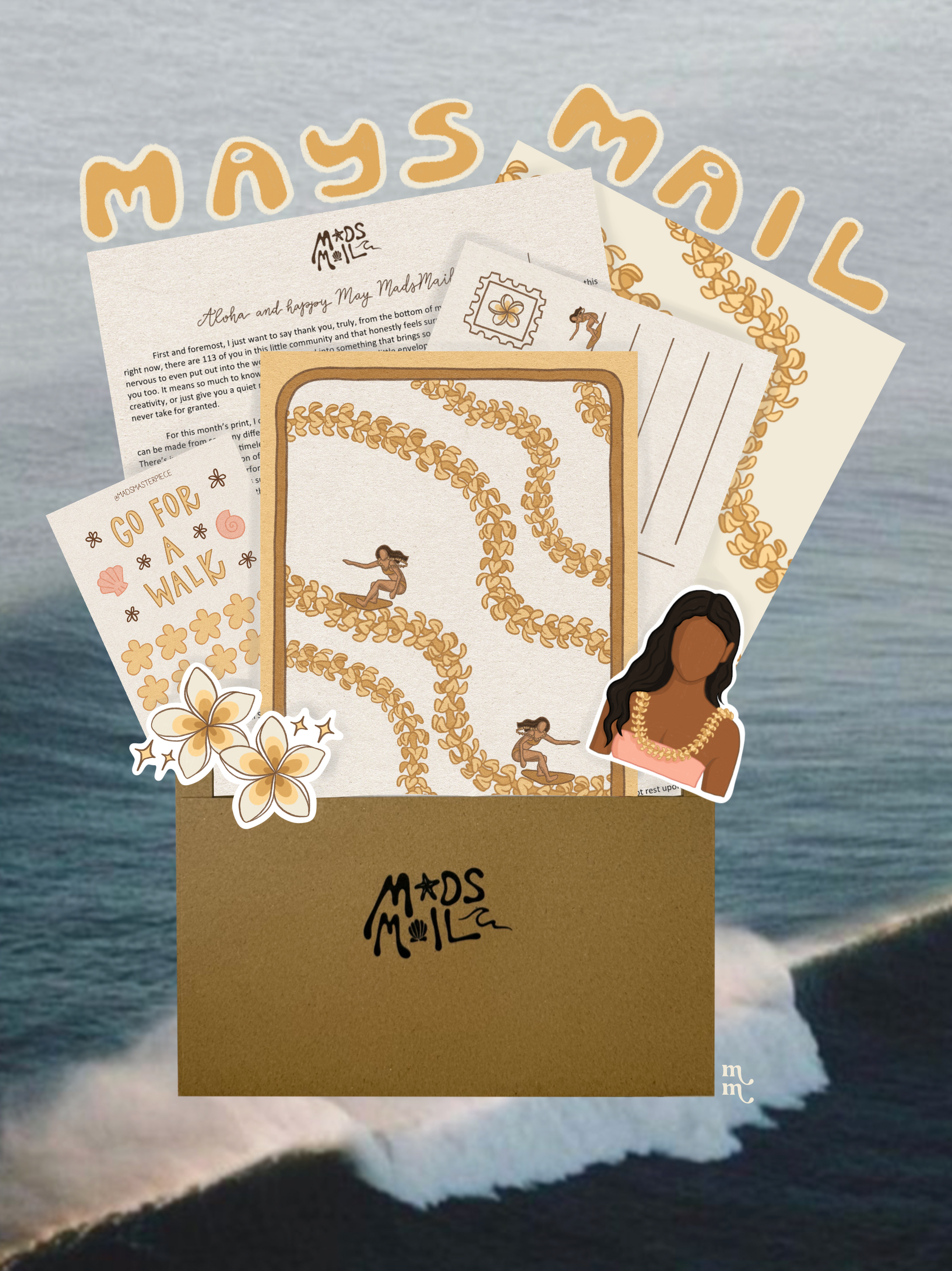 This is a monthly, hand crafted, print club subscription. When you sign up, you’ll receive the following goodies that are all centralized around the theme of Hawaii plants and flowers!